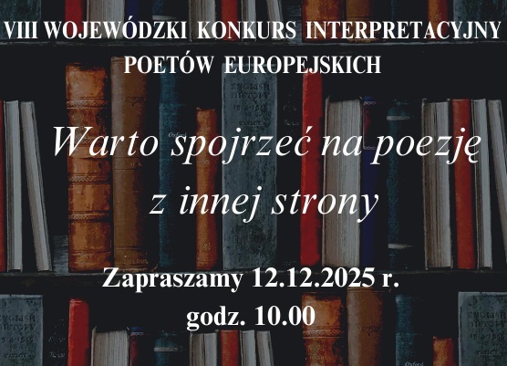 im. Zjednoczonej Europy w Gdańsku serdecznie zaprasza uczniów szkół ponadpodstawowych do udziału w VIII Wojewódzkim Konkursie Interpretacyjnym Poetów  Europejskich „Warto spojrzeć na poezję z innej strony” pod honorowym patronatem Dziekana Wydziału Filologicznego Uniwersytetu Gdańskiego.
